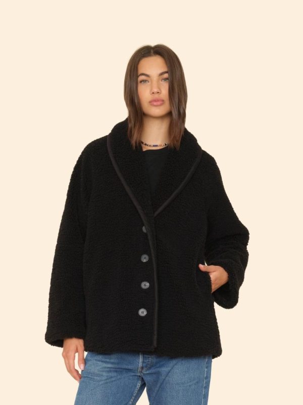 Black Martine Sherpa Jacket | XÍRENA Women’s Outerwear
